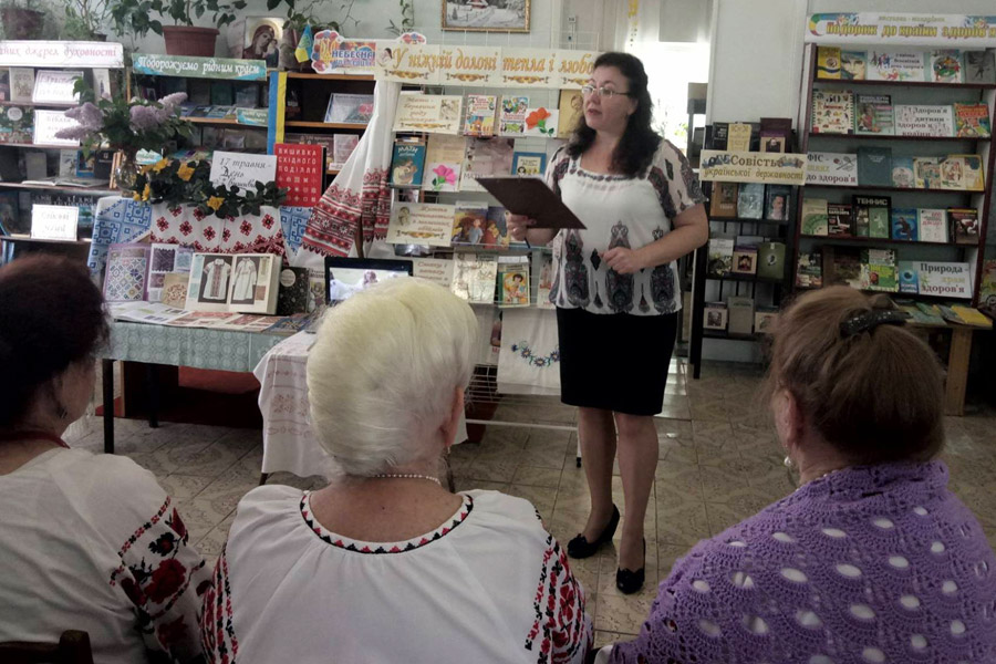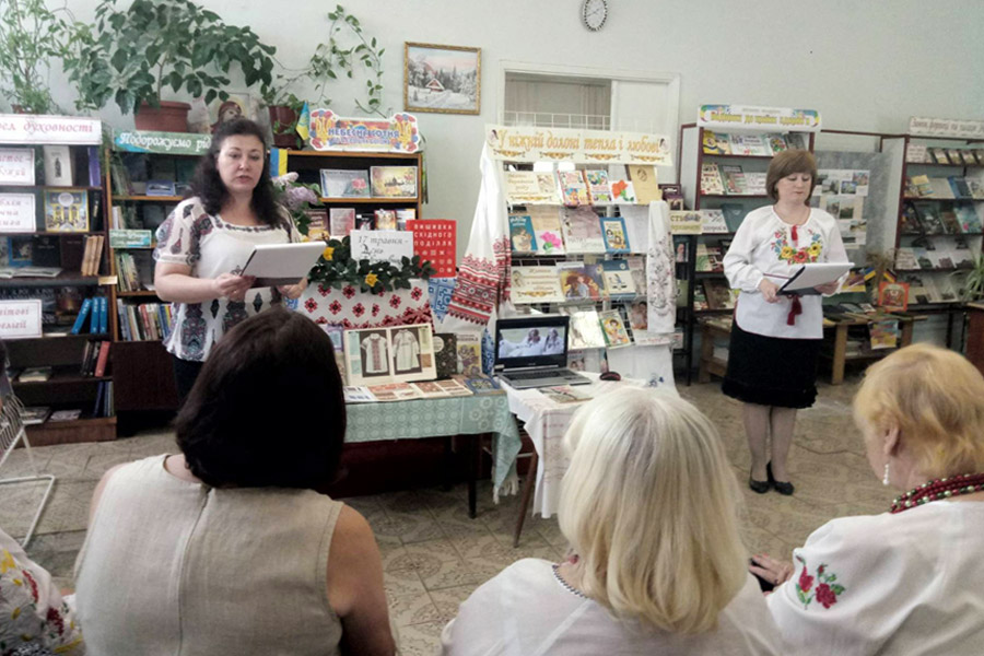 Вишивка – це не тільки майстерне творіння золотих рук народних умільців, а й скарбниця вірувань, духовних устремлінь, інтелекту нашого народу. Бібліотекарі ознайомили присутніх з історією виникнення свята та розповіли про численні орнаментальні зображення на вишиванках.