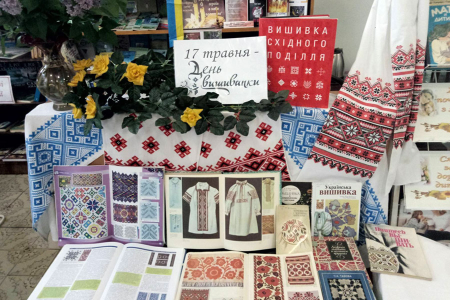 Багатьох зацікавила література на книжковій виставці «17 травня – День вишиванки», прикрашеній рушниками в різних техніках вишивання.