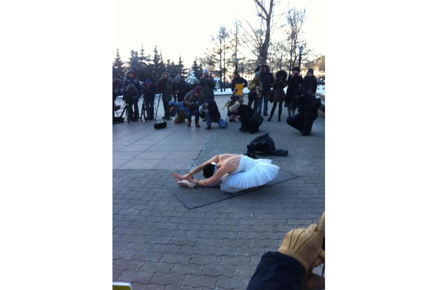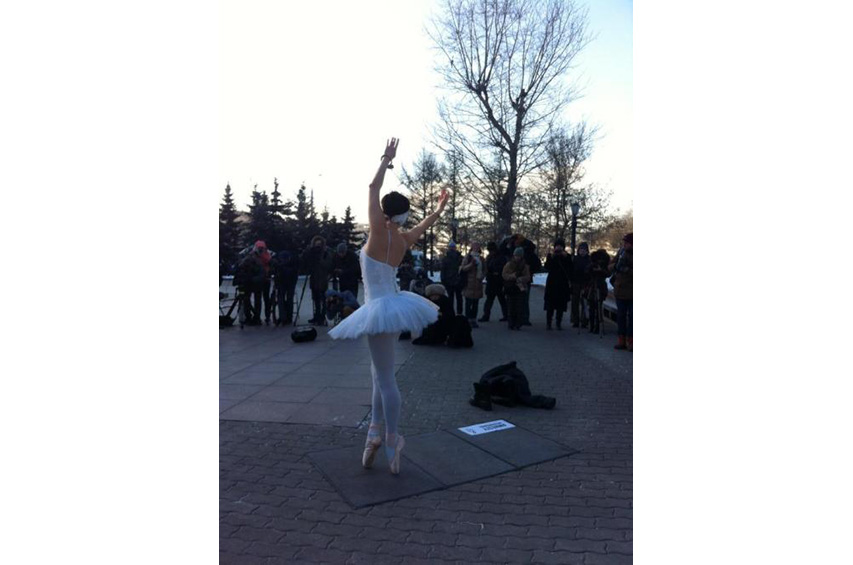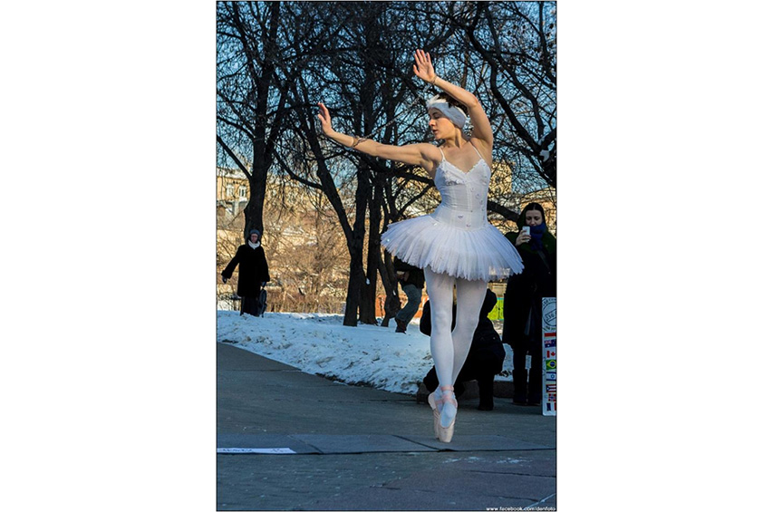 Похоже, события в Украине вдохновляют жителей и других стран бороться за свои права. Так, в Москве в сквере Яузские Ворота при минус 25°С профессиональная балерина Александра Портянникова станцевала «одиночный протест» против репрессивных законов в России.
