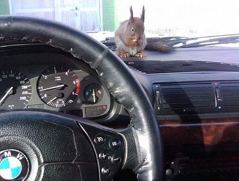 Петр благополучно отслужил и теперь работает таксистом. А его верный друг – бельчонок Минск – всегда рядом.