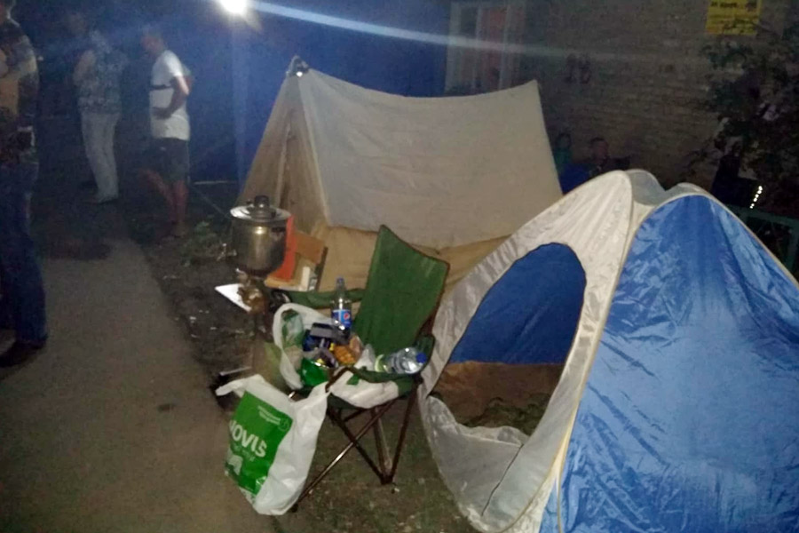 У той час на вулиці активісти встановили кілька наметів та почали зносити шини, вимагаючи проведення чесних виборів та недопущення фальсифікацій. Поліція попросила прибрати шини, через що між мітингувальниками та правоохоронцями сталася словесна перепалка.