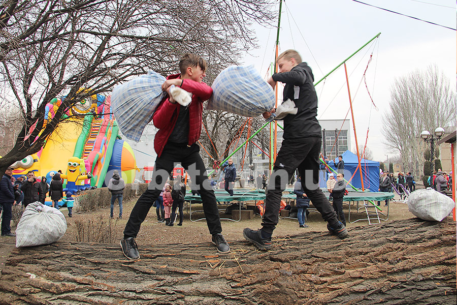 Тех, кто постарше и сильнее, зазывали принять участие в веселой забаве на силу и равновесие – боях с мешками.