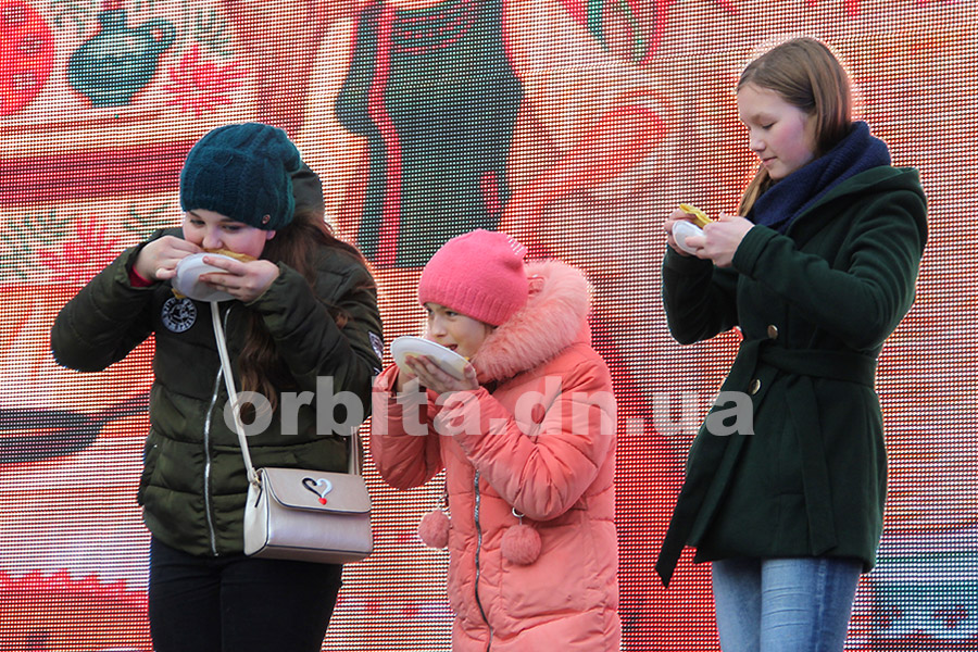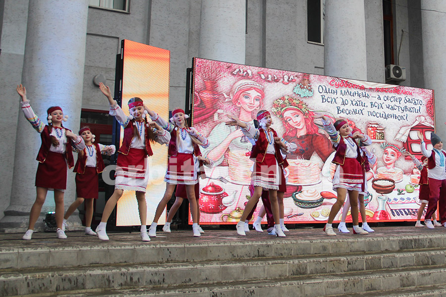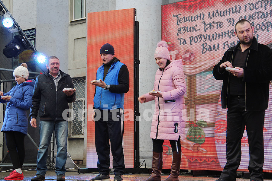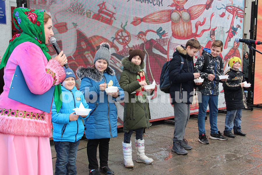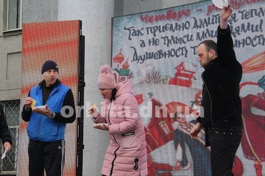 В перерывах между концертными номерами для детей и взрослых проводились конкурсы и соревнования: на самое быстрое поедание блинов и вареников, самый красивый выгрызенный узор на блине. Все участники состязаний получали в подарок фруктовый сок.