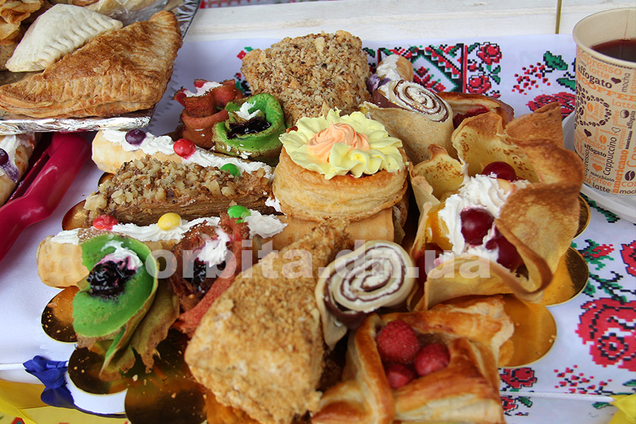 Задолго до начала официальной части посетители могли насладиться аппетитными пирогами, блинами и тортами со всевозможными начинками, пряниками и другими сладостями, которые можно было купить в торговых павильонах-домиках.