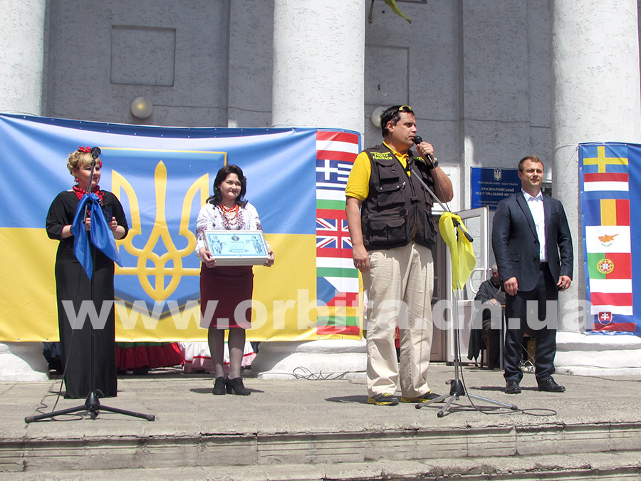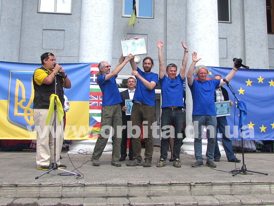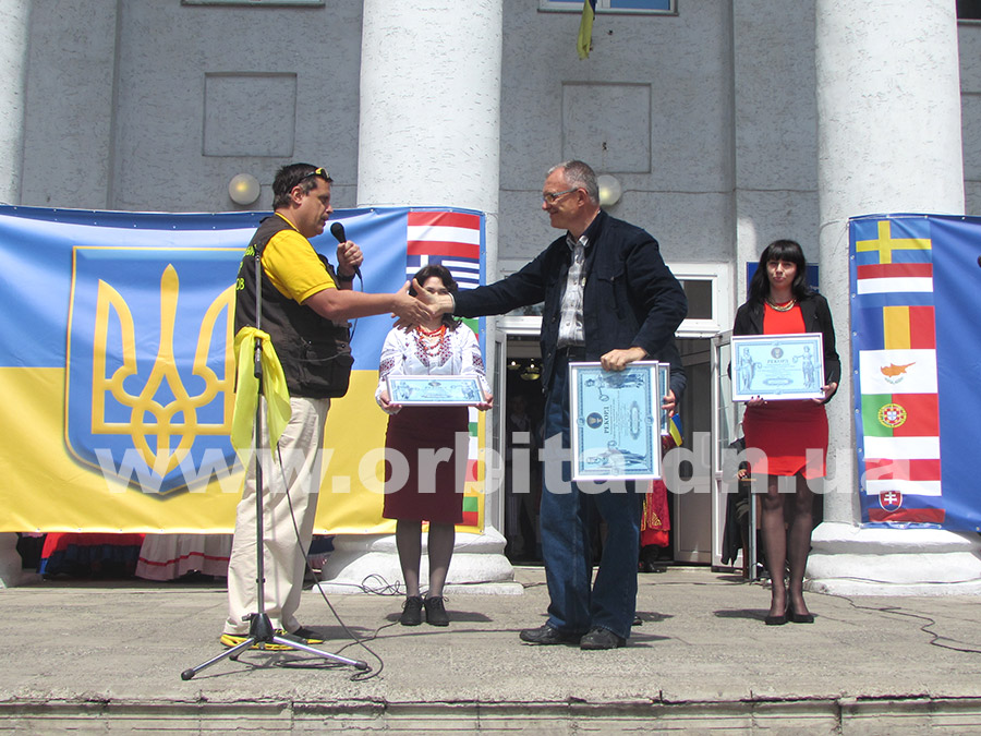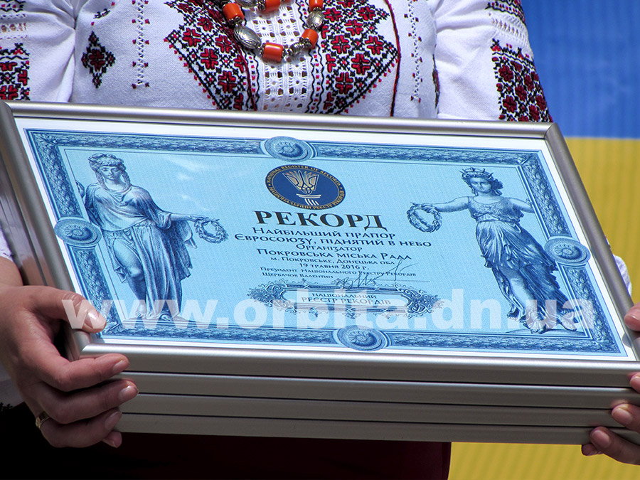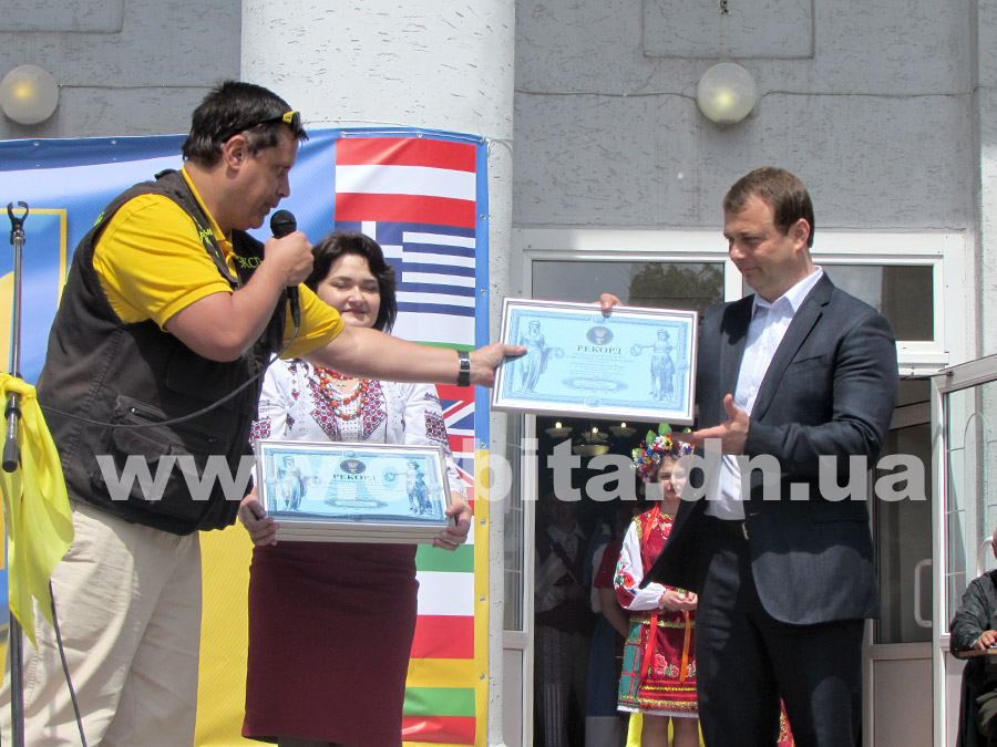 Виталий Жорин вручил дипломы за установление национального рекорда красноармейскому городскому голове Руслану Требушкину, гостям из Литвы, запускающим флаг и именующим себя «воздушными хулиганами», а также экс-послу республики Литва в Украине Пятрасу Вайтекунасу. Именно он в 2011 году придумал запустить в небо флаг, а позже реализовал эту идею.