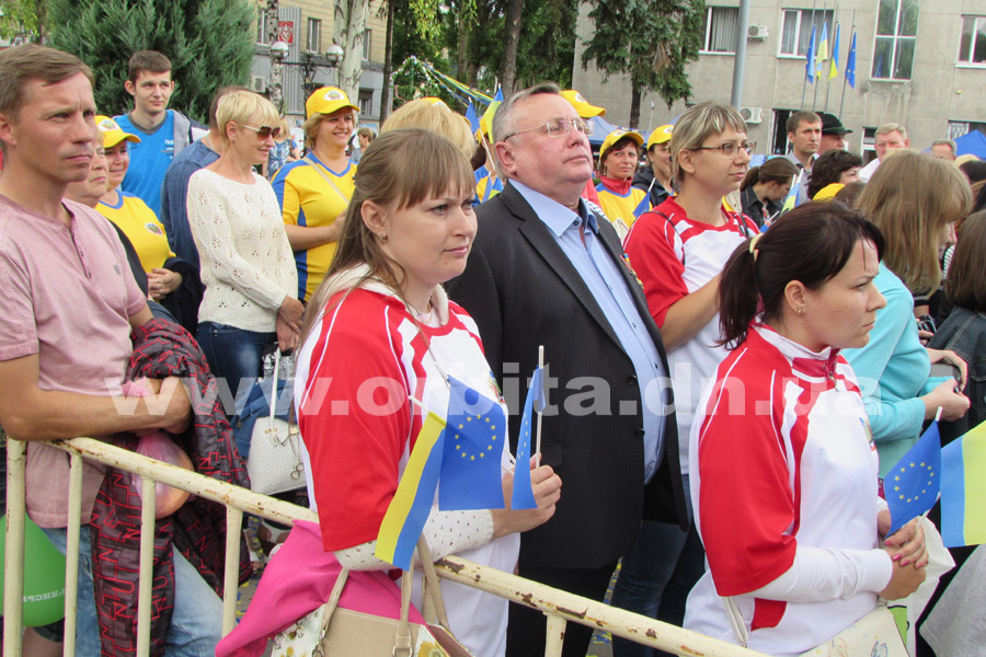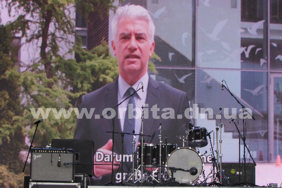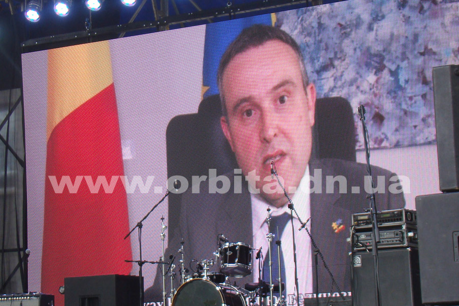 К приветствиям присоединялись послы страны Евросоюза в Украине: Португалии, Литвы, Италии, Бельгии и Франции. Они поздравили жителей Донетчины с присоединением к большой европейской семье и пригласили посетить государства, представителями которых они являются.