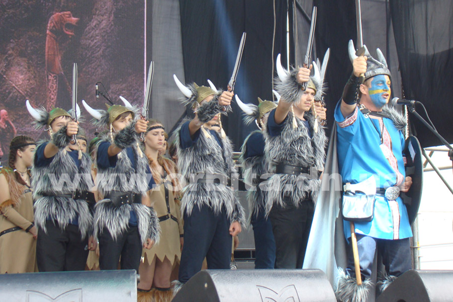 Первым свою программу, посвященную Швеции, представил Покровск. Местная команда выбрала костюмы эпохи викингов, а ее предводителем стал городской голова Руслан Требушкин.