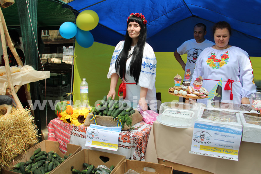 Сегодня в рамках празднования Дня Европы в Покровске на бульваре Андрющенко состоялась выставка-ярмарка победителей областной грантовой программы «Украинский донецкий куркуль».