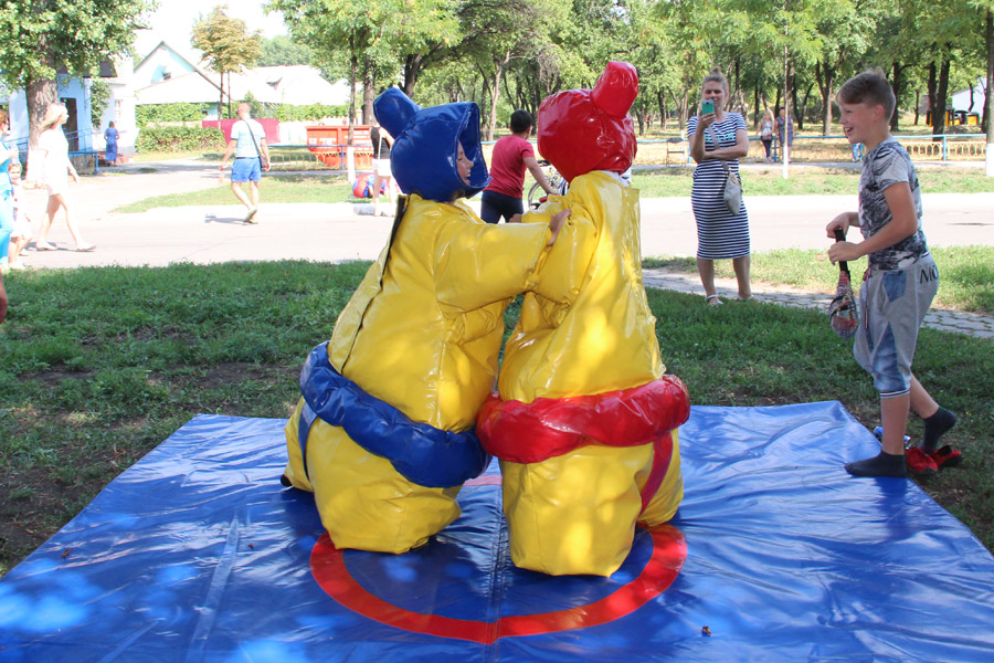 Часть улицы Степана Бовкуна (Правды) от динзавода до парка превратилась в праздничный городок. С полудня самых маленьких покровчан ожидали надувные бассейны, батуты и всевозможные развлечения.