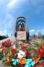 Сегодня в Красноармейске состоялось праздничное шествие по проспекту Шахтостроителей к памятнику-мемориалу погибшим воинам. Здесь, в торжественной и трепетной атмосфере, прошел митинг-реквием «Хай живі пам’ятають».