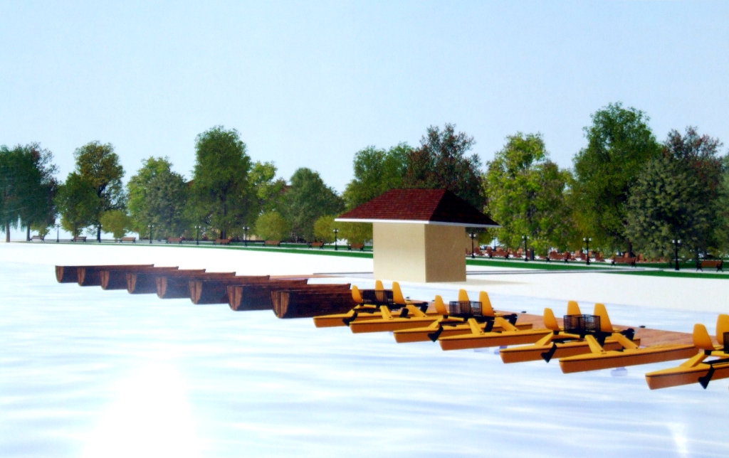 «Здесь планируется построить здание семейного отдыха с игровой комнатой для детей – так называемый зимний вариант, напротив будет находиться танцевальная площадка с духовым оркестром, где после 19.00 сможет отдыхать и молодежь. Построим фонтан, установим детские игровые площадки по примеру тех, которые сегодня существуют в Киеве и Донецке, соорудим детский бассейн и лодочную станцию вдоль берега», – комментировал эскизы Валерий Макоткин.