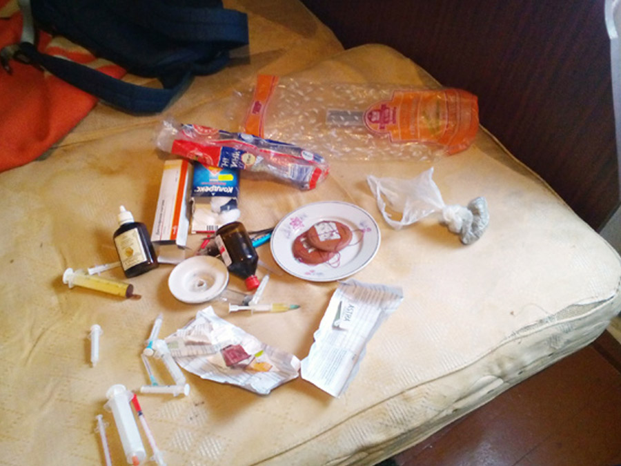 На следующий день сотрудники Димитровского отделения полиции задокументировали еще один факт незаконного хранения наркотиков. При проверке оперативной информации по месту жительства 25-летнего димитровчанина в спальной комнате под матрацем кровати правоохранители выявили и изъяли полиэтиленовый пакет с веществом растительного происхождения, похожим на наркотическое, медицинский шприц с соляной кислотой, бумажные свертки с кристаллическим йодом и красным фосфором, бутылочку из-под ополаскивателя для полости рта с веществом прозрачного цвета.