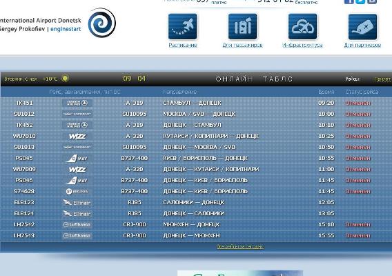 “По распоряжению Государственной авиационной службы Украины приём и выпуск воздушных судов из аэропорта Донецк временно приостановлен, – сообщили в пресс-службе ведомства. – Актуальная информация о статусе рейсов размещена на онлайн табло официального сайта”.