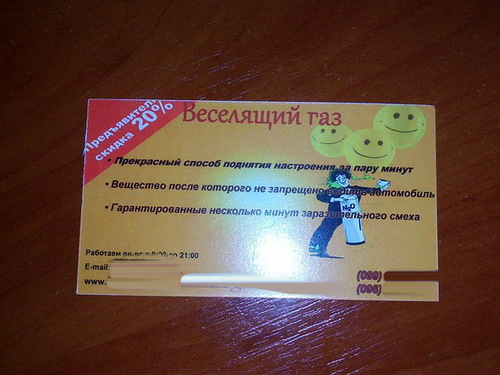 Так, на визитной карточке написано, что это вещество – ничто иное, как «веселящий газ» или оксид азота, пишет донецкий блоггер pauluskp.