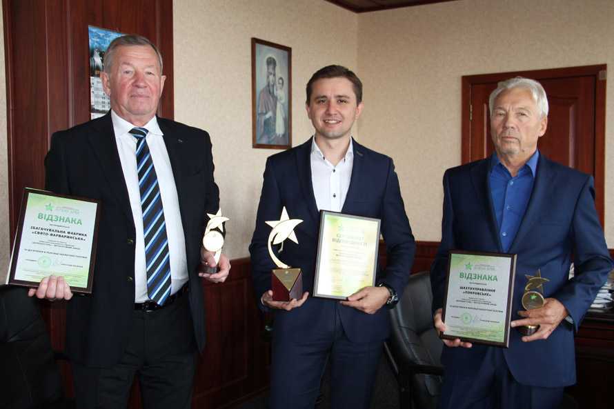 За ответственное отношение к окружающей среде, соблюдение высоких международных стандартов в сфере защиты природы ПРАО «Донецксталь» и его предприятия-партнеры ЧАО «Шахтоуправление «Покровское» и ООО «Обогатительная фабрика «Свято-Варваринская» были отмечены сертификатами общественной организации «Всеукраинский союз экологического маркирования «Зелена зірка». 23 августа президент организации Александр Васильев лично вручил сертификаты первым руководителям предприятий – Ильдару Салееву, Леониду Байсарову и Сергею Василенко.