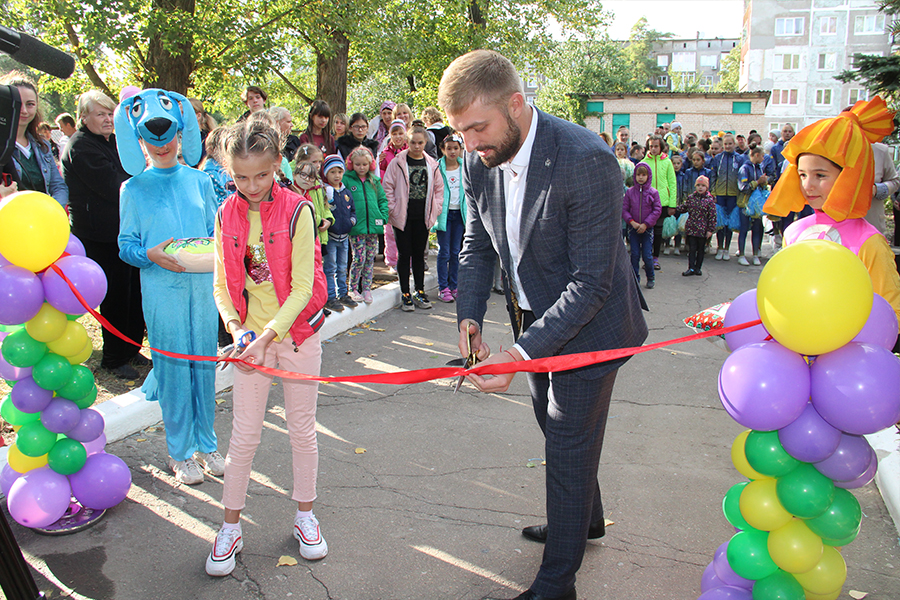 После этого наступил самый торжественный и долгожданный момент – открытие. Право перерезать ленточку на входе было предоставлено Кириллу Малкову и юной воспитаннице центра «Бригантина» Ане Белобородовой.