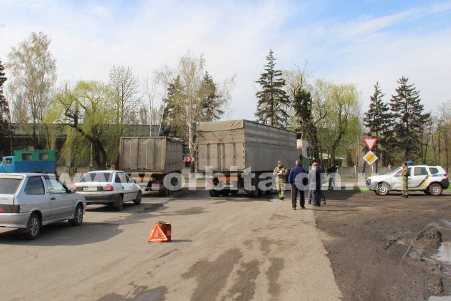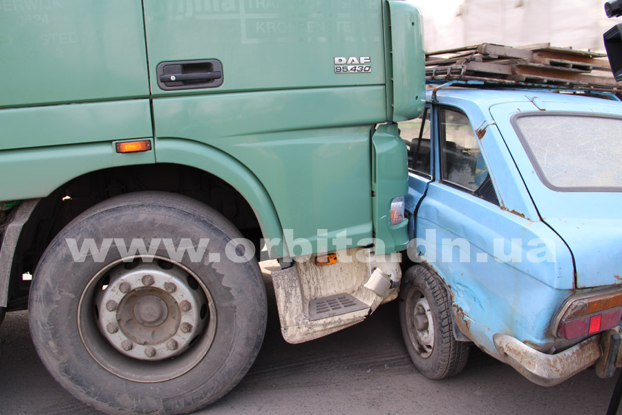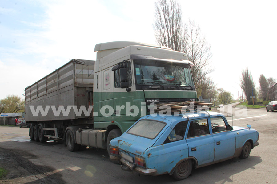 Сегодня около 9 часов утра перед перекрестком улицы Шмидта и Защитников Украины (Днепропетровской) произошло дорожно-транспортное происшествие с участием грузового автомобиля-зерновоза DAF и легкового «Москвич-Комби». На месте ДТП побывала съемочная группа телекомпании «Орбита».
