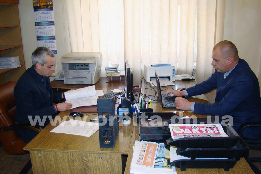 Из здания с вывеской «Прокуратура города Авдеевки» навстречу журналистам выходят двое молодых улыбающихся мужчин. Один из них практически полностью седой. Нас проводят на второй этаж четырехэтажного дома, в котором размещается прокуратура. Направо и налево по длинному коридору – открытые двери, просторные помещения, где нет ни одного сотрудника. Потому что на всем этаже занят только один кабинет, в котором и размещается действующий штат из двух человек – встретивших нас Дмитрия Николаевича Одинца и Дмитрия Александровича Панасенко.