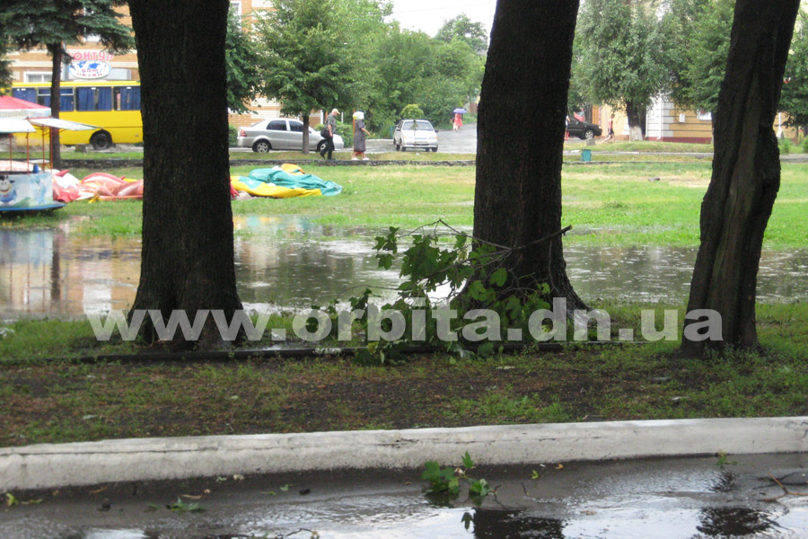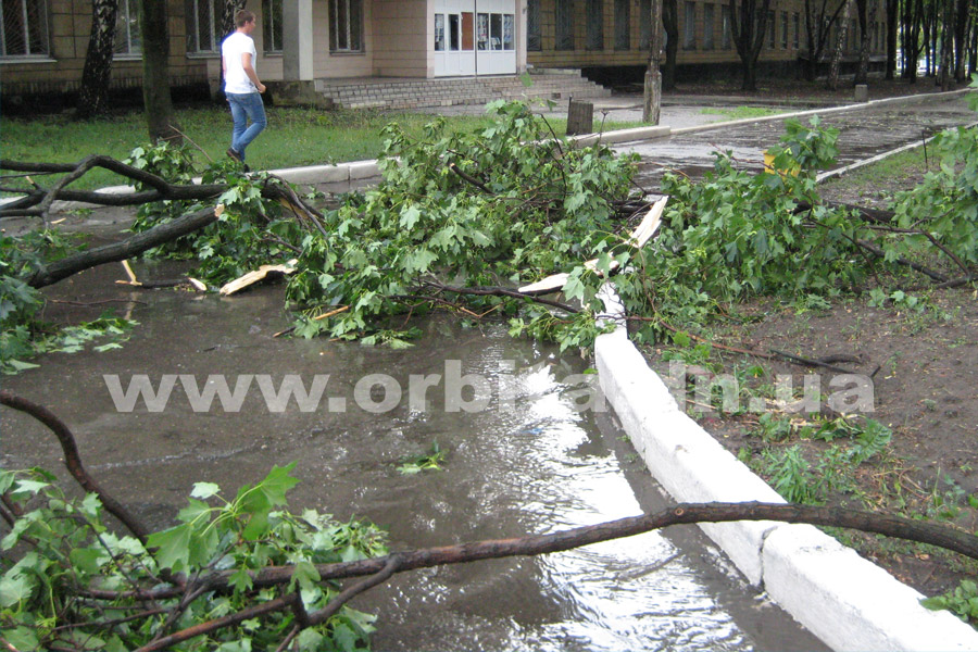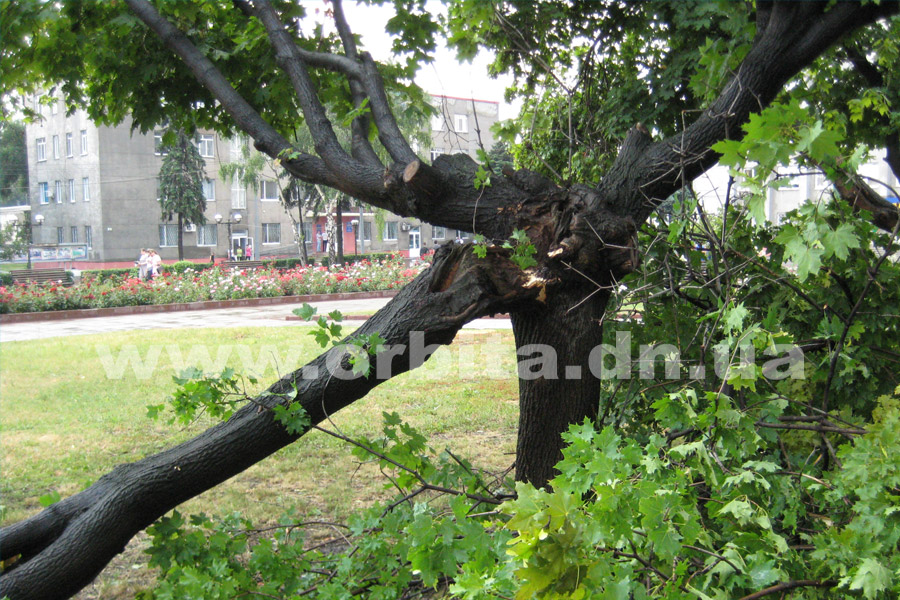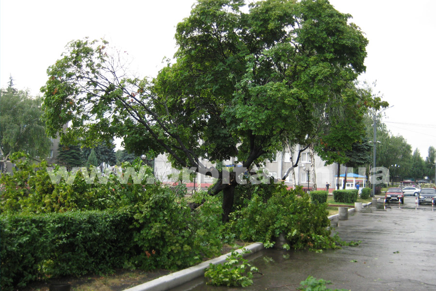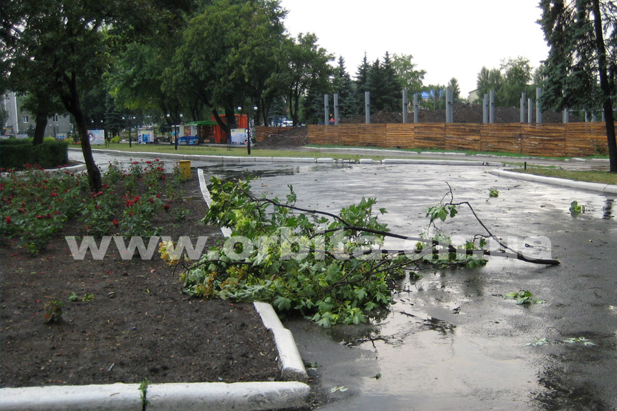 Буря, которая пронеслась прямо над землей, причинила немало бед даже в центре города. После непогоды на бульваре Андрющенко, проспекте Мира и площади Шибанкова обнаружились поваленные деревья, сломанные верхушки.
