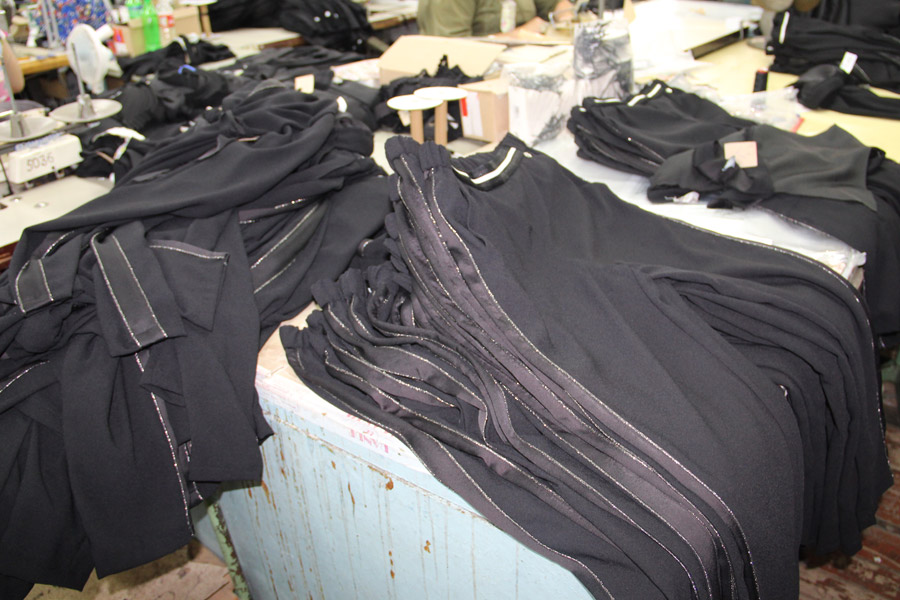 Недавно фабрика получила от французских партнеров заказ на пошив модных детских и подростковых брюк черного цвета, с серебристыми вставками по всей длине изделия. Коллектив, состоящий приблизительно из 30 человек, мобилизовался на изготовление очередной партии продукции высокого качества.