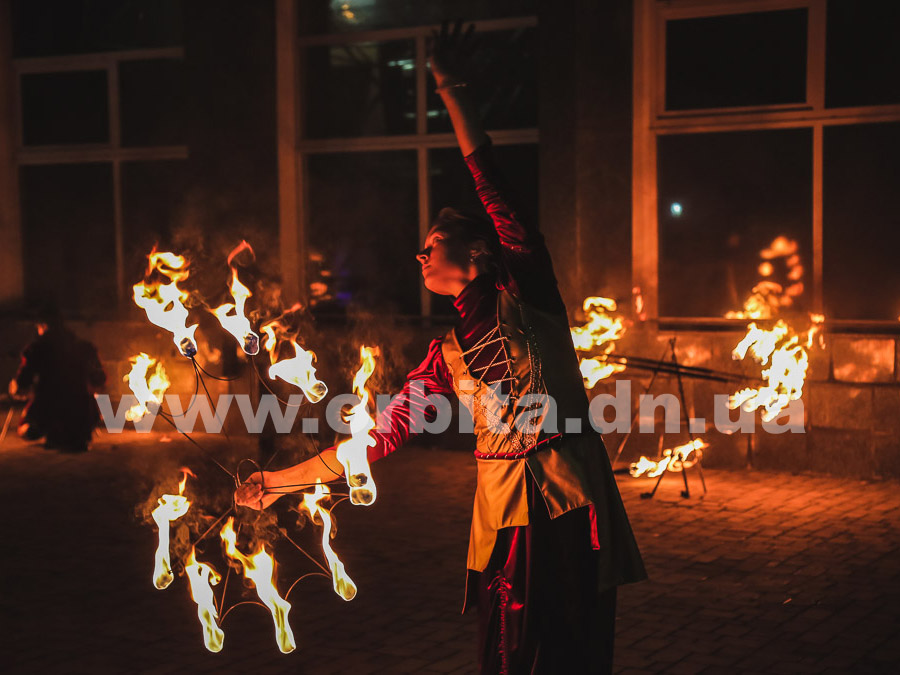 Яркой финальной точкой фестиваля талантливых людей в Покровске стало фаер-шоу.