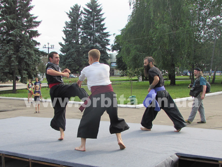 Мастера своего дела устроили показательные выступления, вызвавшие всеобщий восторг, и пригласили желающих на мастер-класс по боевому искусству.