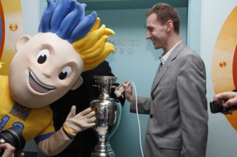А уже в 19:00 для всех, кто придет поздравить прибытия кубка в Украине, споют известные украинские группы – Скай, «Крихітка», ТНМК, Вопли Видоплясова и Гайтана. На выходные трофей ЧЕ будет выставлен на всеобщее обозрение на Майдане Независимости.
