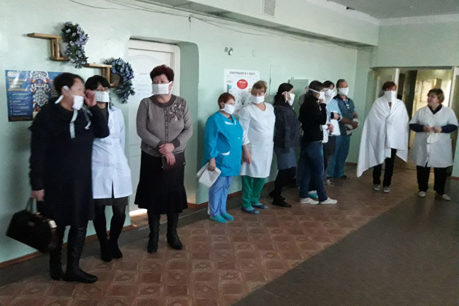 Тренировка с отработкой эвакуационных мероприятий при химической опасности прошла согласно графику 29 ноября в терапевтическом корпусе Мирноградской ЦГБ. В мероприятии были задействованы медработники и пациенты кардиологического, терапевтического, приемного и ЛОР отделений.