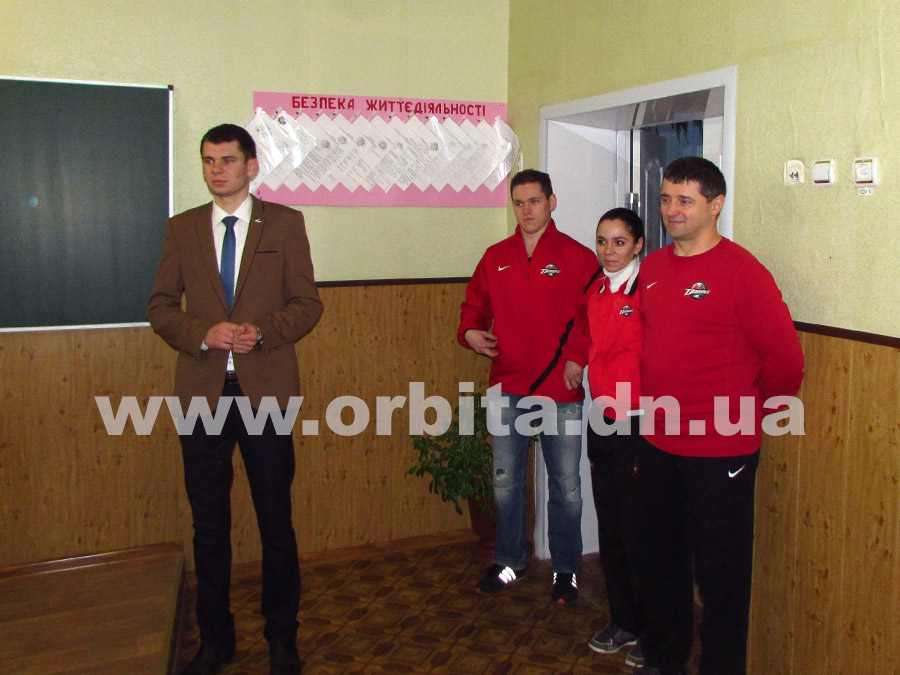 Сегодня, в День Святого Николая, общеобразовательную школу №9 города Красноармейска посетили представители хоккейного клуба «Донбасс»: заместитель директора ДЮСШ Федор Ильенко, старший тренер по хоккею Александр Селютин, тренер по фигурному катанию Татьяна Выставкина и экс-капитан команды «Молодая Гвардия» Руслан Ромащенко.