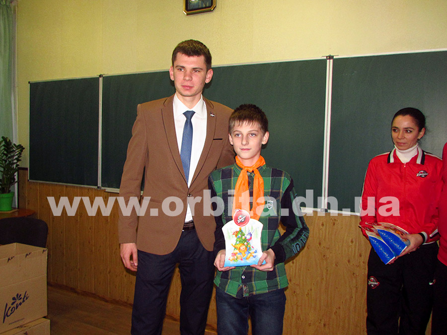 Гости приехали не с пустыми руками. Они вручили школьникам сладкие подарки от хоккейного клуба «Донбасс» и Благотворительного фонда Бориса Колесникова.