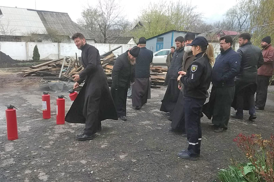 Після бесіди рятувальники перейшли до практичного навчання та показали священнослужителям як правильно користуватися вогнегасниками. Кожен брав активну участь у навчанні та спробував загасити умовну пожежу.