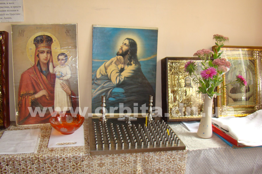 Над входом в соседнюю дверь – еще один крест. Поймав взгляды журналистов, отец Ростислав пояснил, что в одном здании православные мирно соседствуют с протестантской церковью украинского пятидесятнического братства. И не только с ней – а еще с почтовым отделением и угольным складом для местного медпункта.