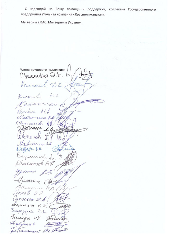 Работники ГП «УК «Краснолиманская» просят Президента Украины вмешаться в ситуацию, сложившуюся вокруг их шахты, чтобы не допустить ликвидации прибыльного угольного предприятия.