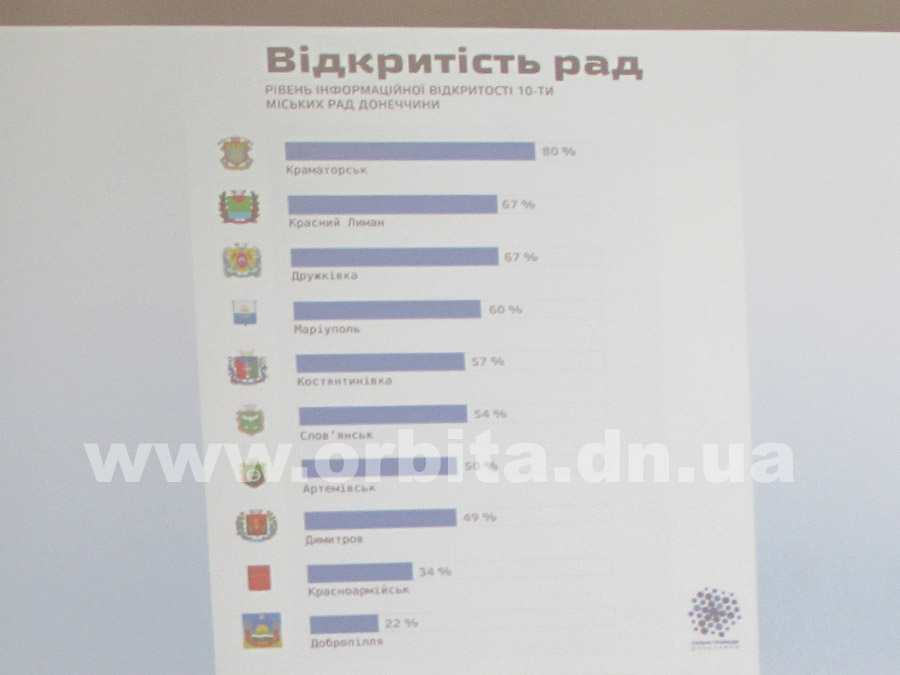 Другой темой исследования общественников стал уровень открытости городских советов разных городов Донецкой области и их взаимодействие с местными жителями.