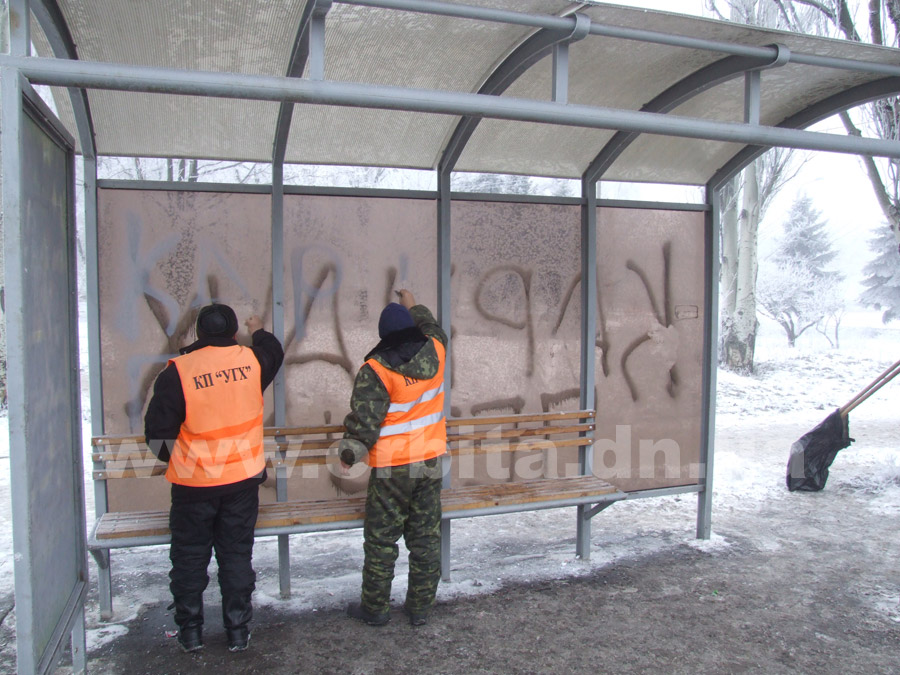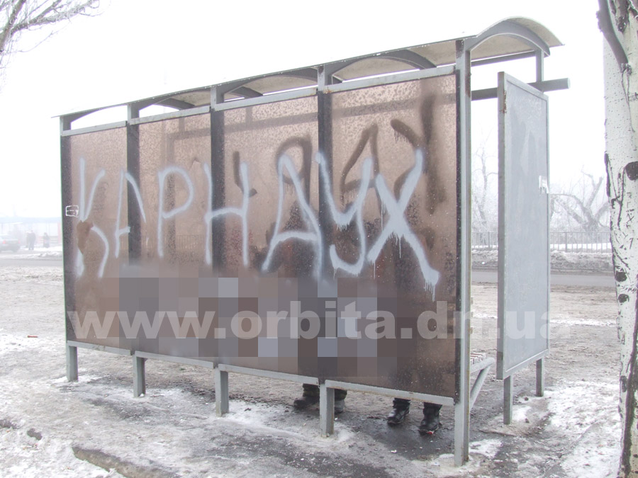 Сегодня на стенках остановочного павильона на улице Днепропетровской (остановка «Больница») появилась обидная надпись в адрес руководителя КП «УГХ».
