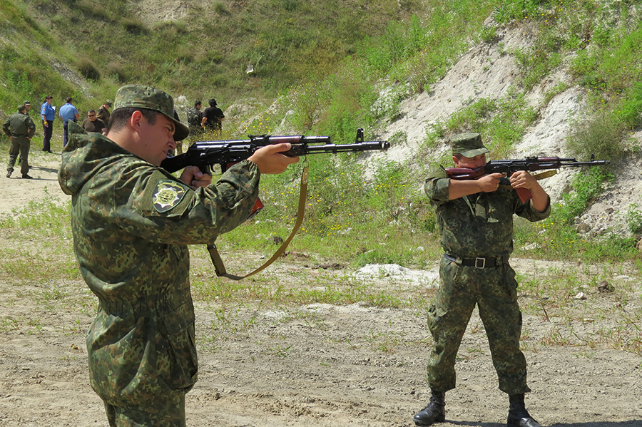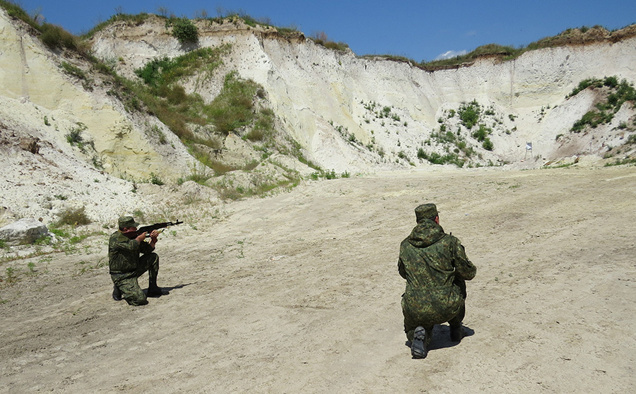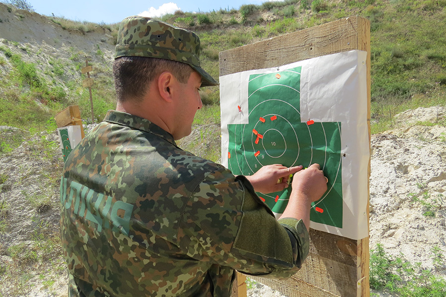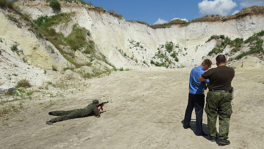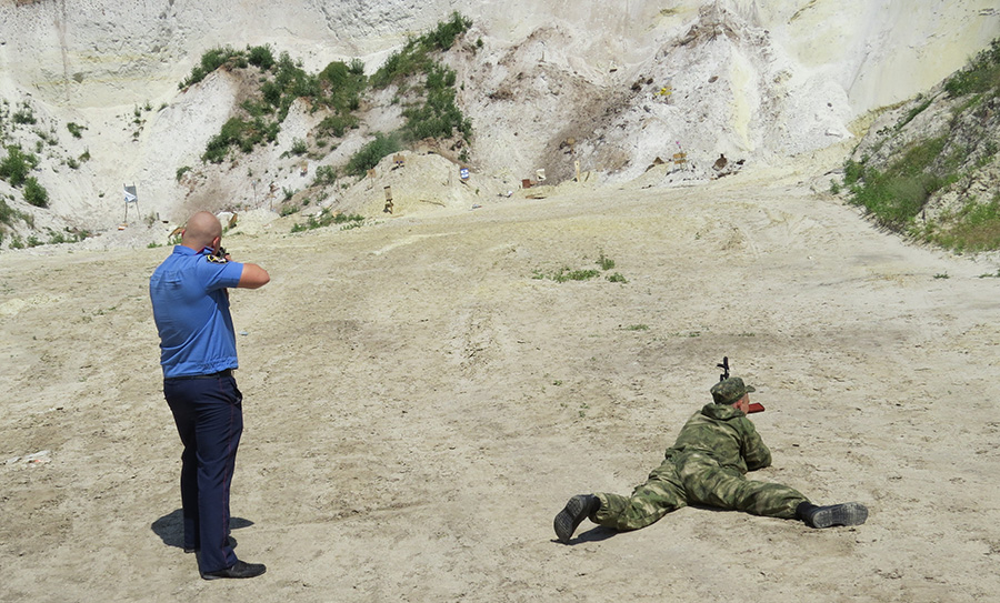 Стрельбы проходили в карьере села Песчаное. Тридцать милиционеров оттачивали мастерство владения автоматом системы Калашникова и пистолетом Макарова. Стрельба велась по неподвижной мишени как в одиночном режиме, так и очередями.