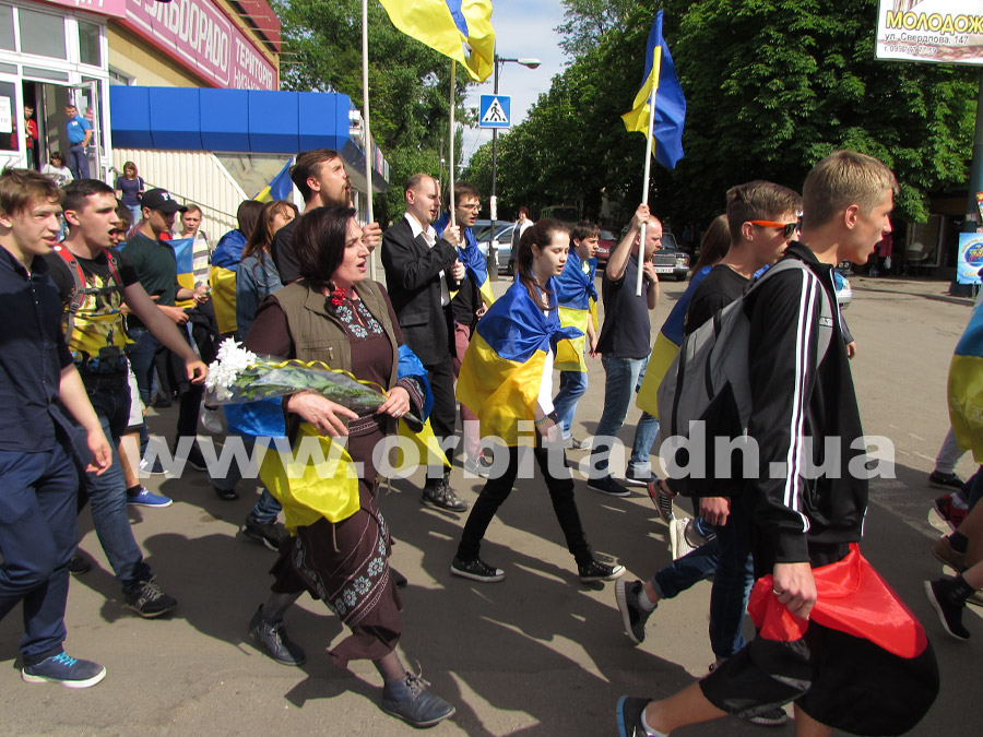«Два года назад украинские силовики освободили город и сорвали незаконный референдум, организованный сторонниками «русского мира», – рассказывает один из участников марша. – Сегодня решили собраться, вспомнить события двухлетней давности и в очередной раз сказать всем, что Красноармейск – это Украина».