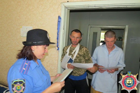 «24 августа красноармейские правоохранители посетили Львовский военный мобильный госпиталь №66, расположенный в городе. Милиционеры поздравили персонал и пациентов с 24-й годовщиной Независимости Украины. Бойцам, которые после полученных на передовой ранений находятся здесь на лечении, работники милиции передали патриотические рисунки, которые нарисовали дети сотрудников горотдела. Таким образом ребята решили поддержать своих защитников», – говорится в сообщении.