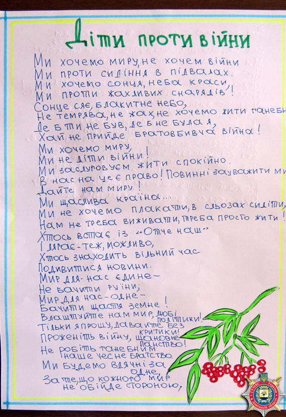 Не оставили равнодушными ни медиков, ни военных строки стихотворения «Дети против войны», которое сочинила дочь одной из сотрудниц Красноармейского ГО Дарина Славатинская.