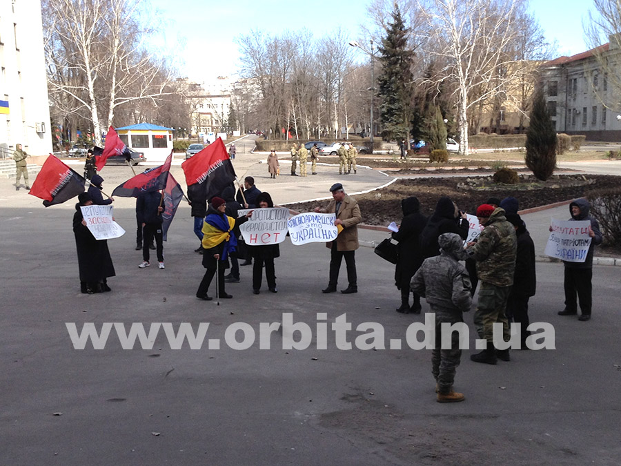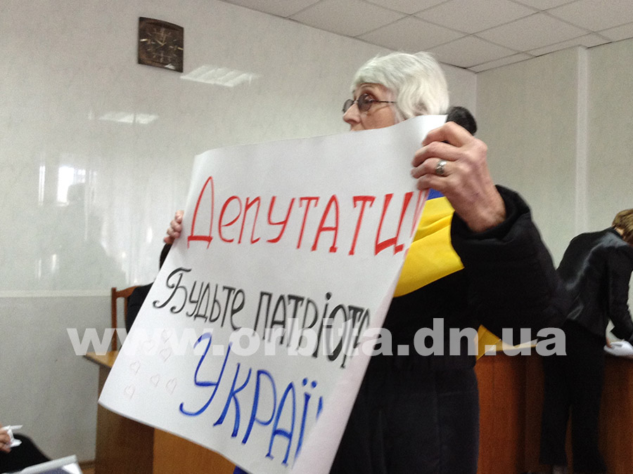 Сегодня в зале заседаний Красноармейского исполкома было людно. На сессию городского совета пришли активисты, требуя от депутатов поддержать принятую на прошлой неделе резолюцию. А чтобы привлечь внимание народных избранников к этому вопросу, перед началом сессии у здания исполкома патриоты организовали пикет.