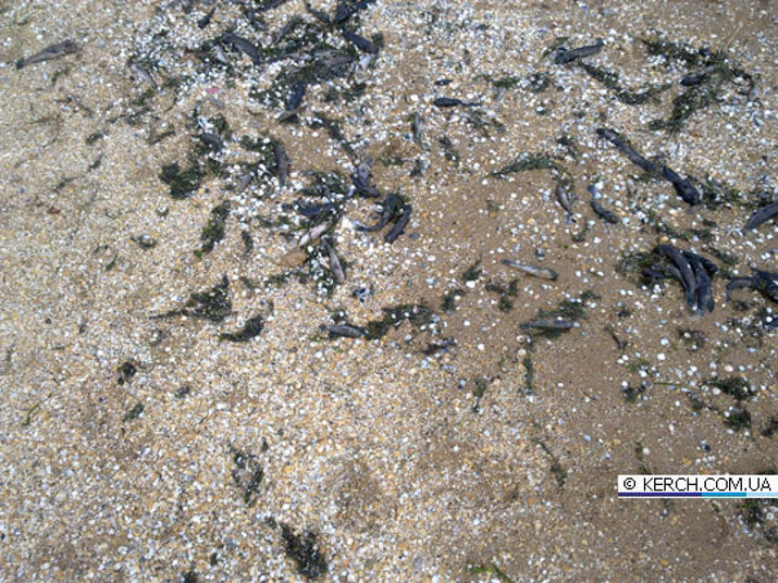 Более 200 метров берега в поселке Щелкино усыпано дохлыми бычками.