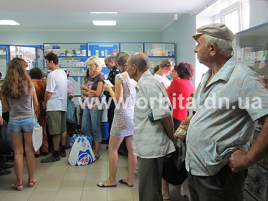 Желая убедиться, что проблема действительно существует, мы отправились в названную женщиной аптеку. Снаружи никаких признаков массовости мероприятия не наблюдалось – шесть-семь пожилых людей мирно беседовали у крыльца. Зато внутри действительно царил ажиотаж – в одной из двух касс принимали льготников, в другой – обычных клиентов. Небольшое и действительно душное помещение было заполнено людьми: многие приехали из Родинского, поселка динасового завода и других отдаленных частей города. При виде камеры стоящие в очереди начали шумно возмущаться своим положением.