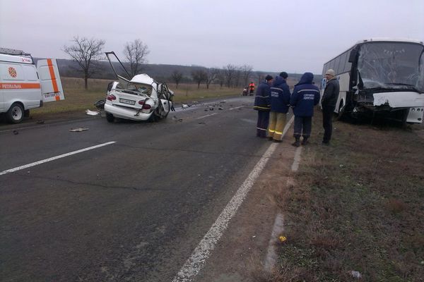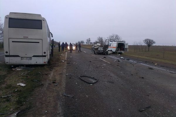 Со стороны Донецка в направлении Мариуполя по встречной полосе двигался автомобиль «Ланос». По словам свидетелей, водитель не смог разминуться с автобусом, который двигался по маршруту «Ялта-Донецк».