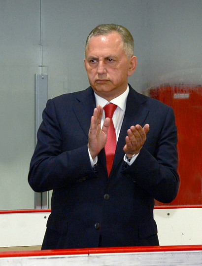 Продолжилась церемония парадом новобранцев клубной школы. С приветственным словом обратился ко всем гостям «Альтаира» президент хоккейного клуба «Донбасс» Борис Колесников.