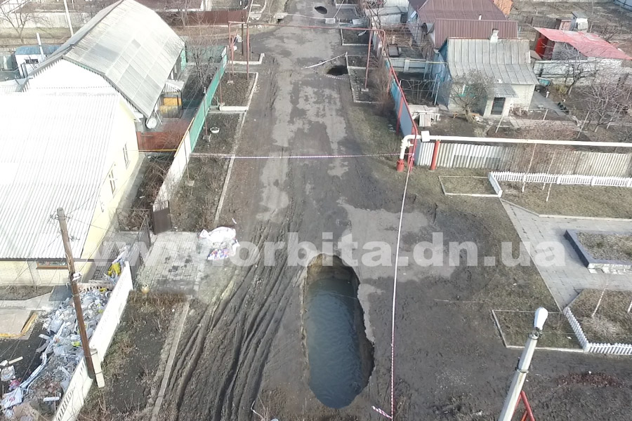 С высоты птичьего полета видно множество ям, образовавшихся вследствие размывания почвы сточными водами. Провалы в асфальте продолжают появляться в новых местах, и никто не может предсказать, где это произойдет в следующий раз. Стоки сами выбирают направление движения – труб, по которым они должны протекать, в земле практически не осталось.