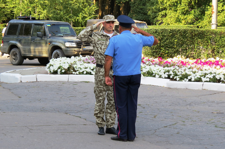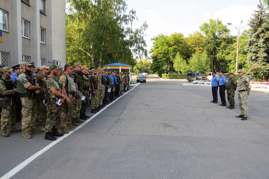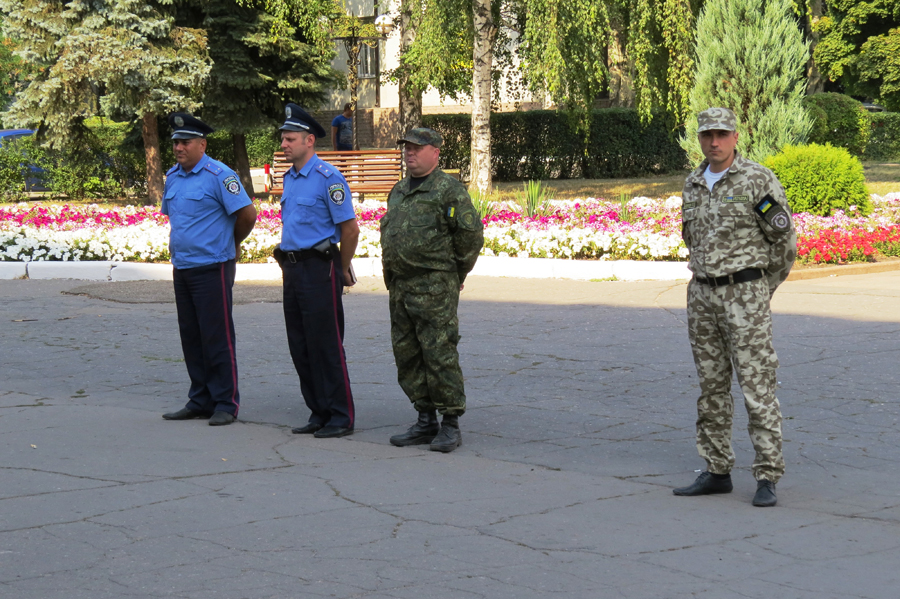 На охрану общественного порядка заступили 46 человек, в том числе 15 сотрудников горотдела, 9 военнослужащих службы правопорядка, 12 сотрудников патрульно-постовой службы милиции особого назначения «Днепр-1», 4 представителя общественной организации «Вітчизна», а также автопатрули ГАИ, ГСО и военной комендатуры.