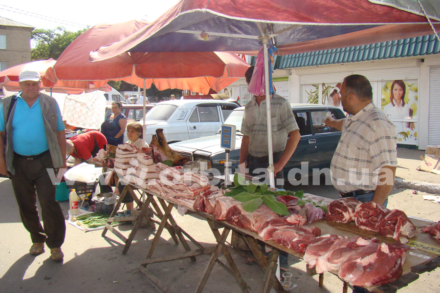Цивилизованные рынки в городе, вроде, и появляются, но и стихийные продолжают жить по своим законам. А почему бы и нет, если покупатели готовы жертвовать здоровьем ради копеечной разницы? Летняя жара только усугубляет опасность, и, к большому сожалению, не все до конца это осознают. Иначе как объяснить спрос на мясо, которое разделывают и продают на стихийном рынке за универмагом «Покровск» (до недавнего времени – «Красноармейск») прямо на канализационном люке? Мясо – продукт скоропортящийся, микробы в нем размножаются быстро…