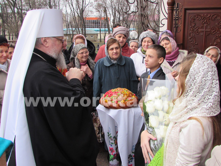 Встретить уважаемых гостей собралось большое количество прихожан, среди которых – представители местных властей и руководители предприятий. У входа в храм архиереям преподнесли традиционный каравай.