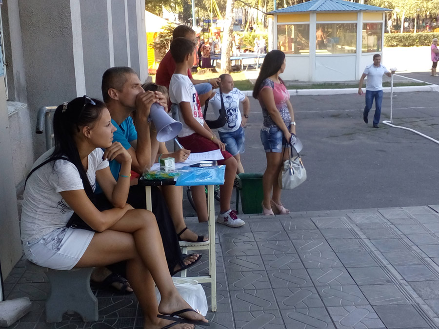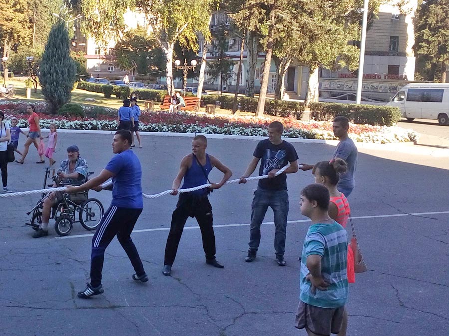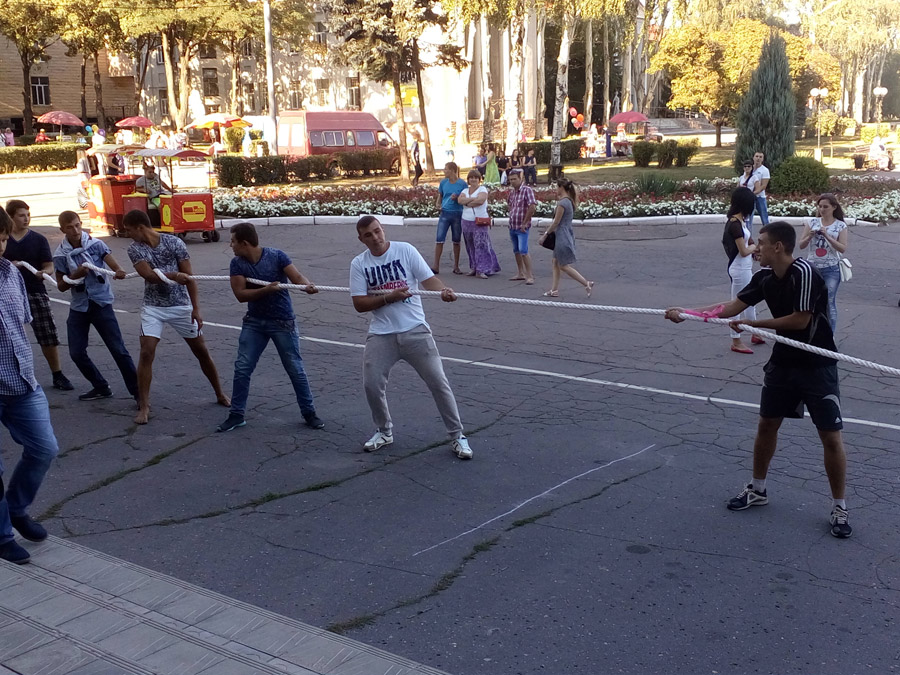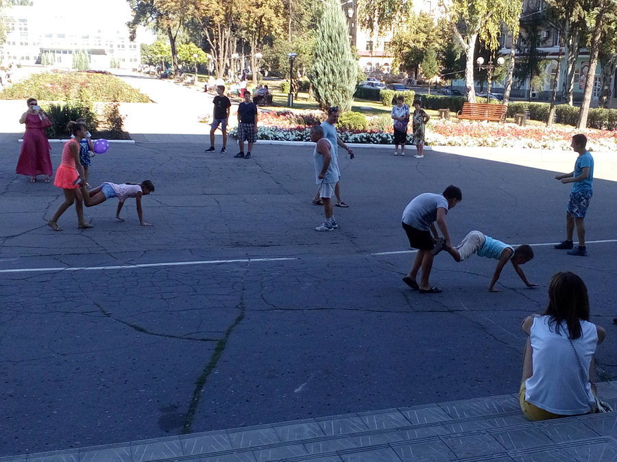На следующий день, 28 августа, на площади Шибанкова комитет по физической культуре и спорту, ДЮСШ Покровска и Центр «Спорт для всех» организовали насыщенную программу спортивных эстафет и соревнований.