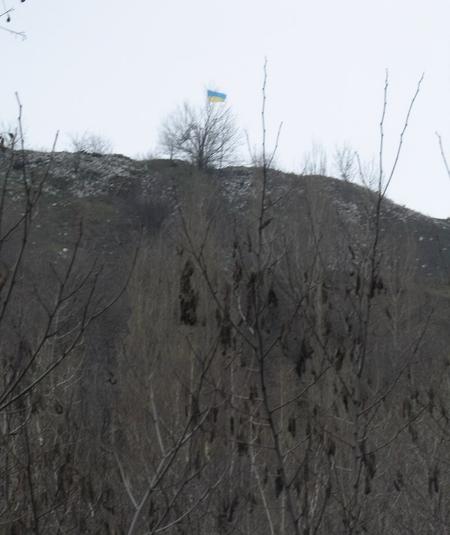 По словам сотрудника учебного автомобильного полигона, который располагается неподалеку от террикона, флаг появился на вершине около 10 часов утра. Есть предположение, что это – одна из спонтанных акций против сепаратизма, которые начали проходить в Донецке после захвата облгосадминистрации сторонниками самопровозглашённого “народного губернатора” Павла Губарева, ведь терриконы считаются одним из символов Донбасса.
